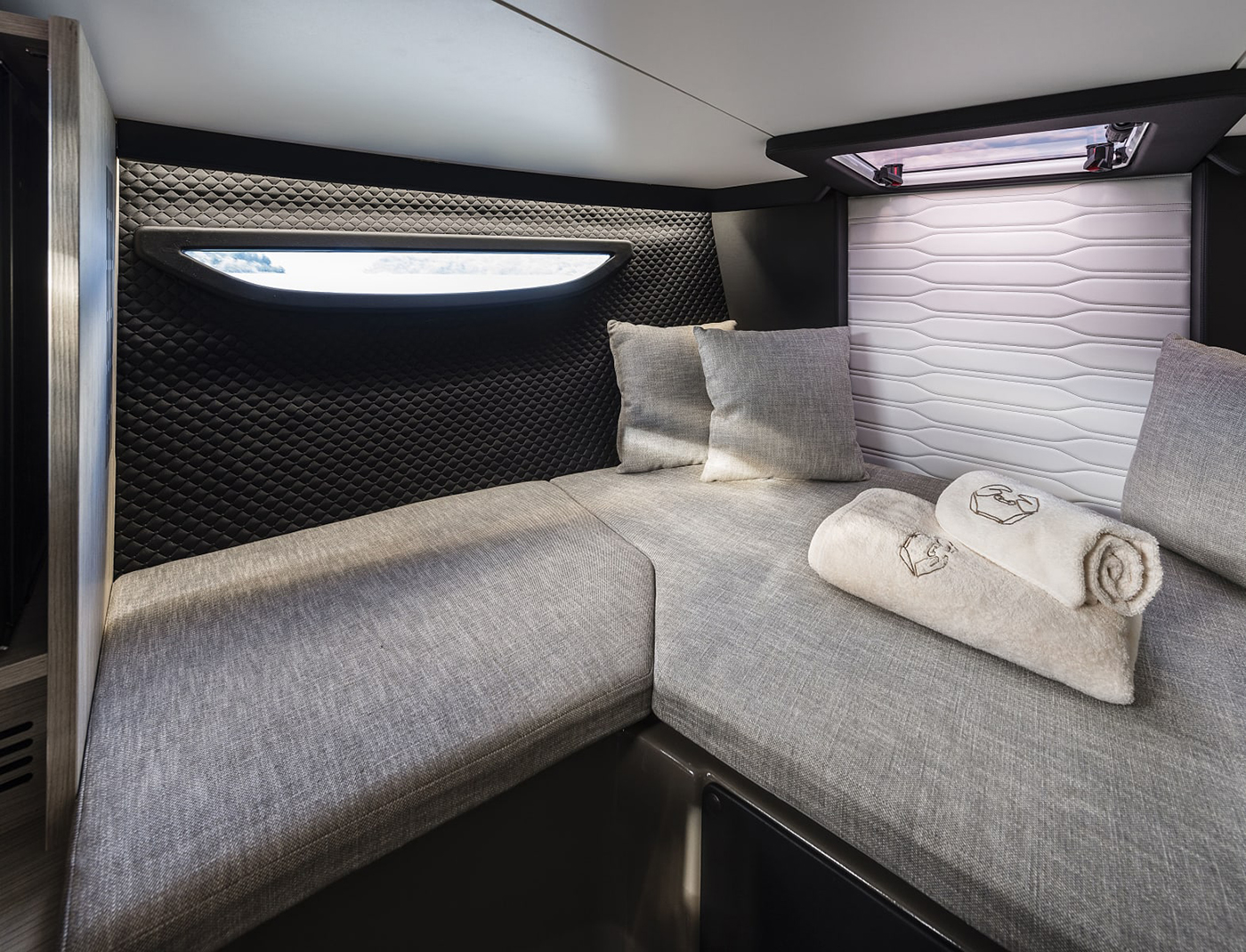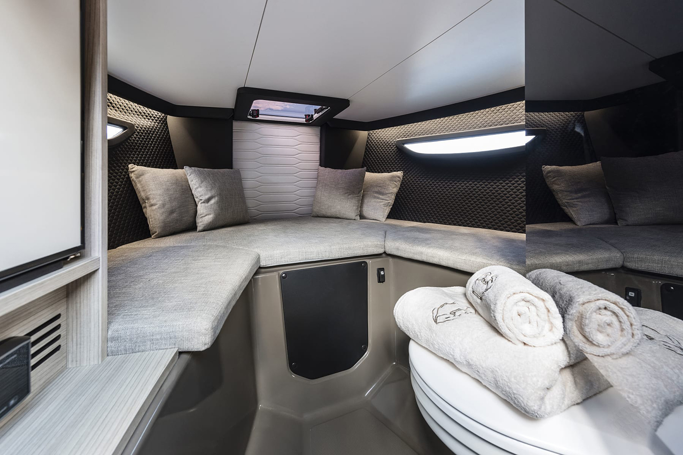 Komfort og velvære om bord forsterkes av elegante og gjennomførte detaljer, samt en funksjonell layout som legger til rette for tid på dekk, men som også inkluderer en liten kabin og et toalett plassert under fordekket – noe som sikrer et behagelig opphold om bord gjennom hele dagen og også over natten.