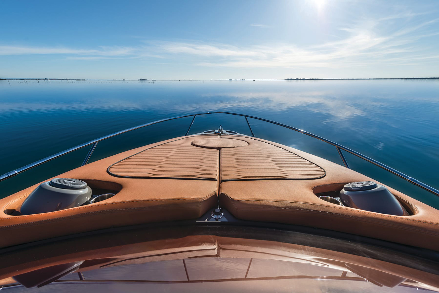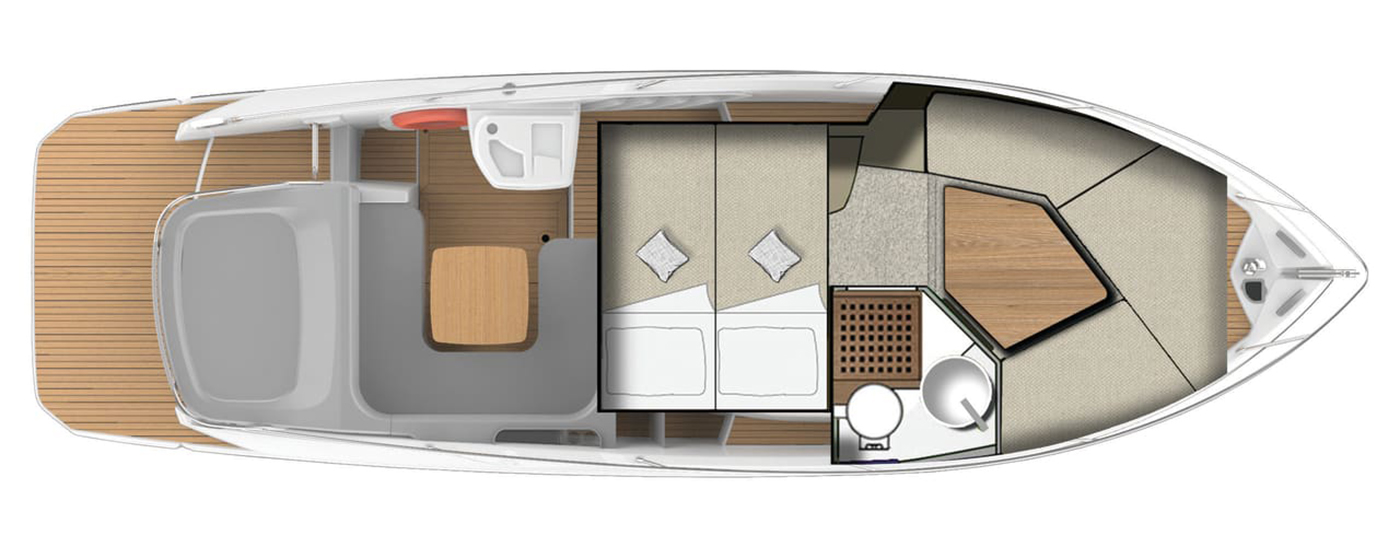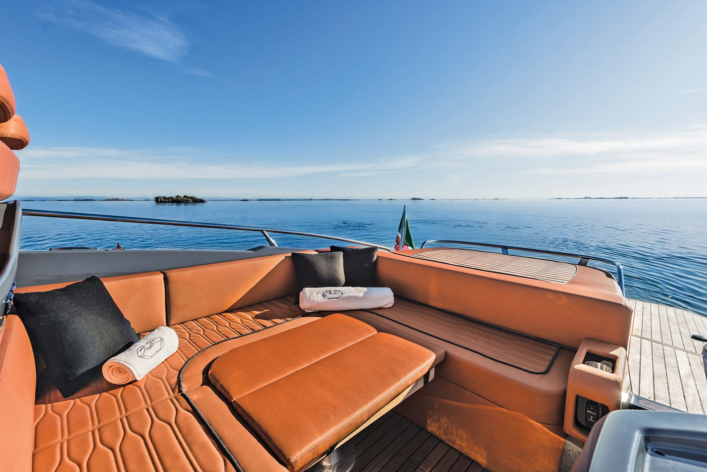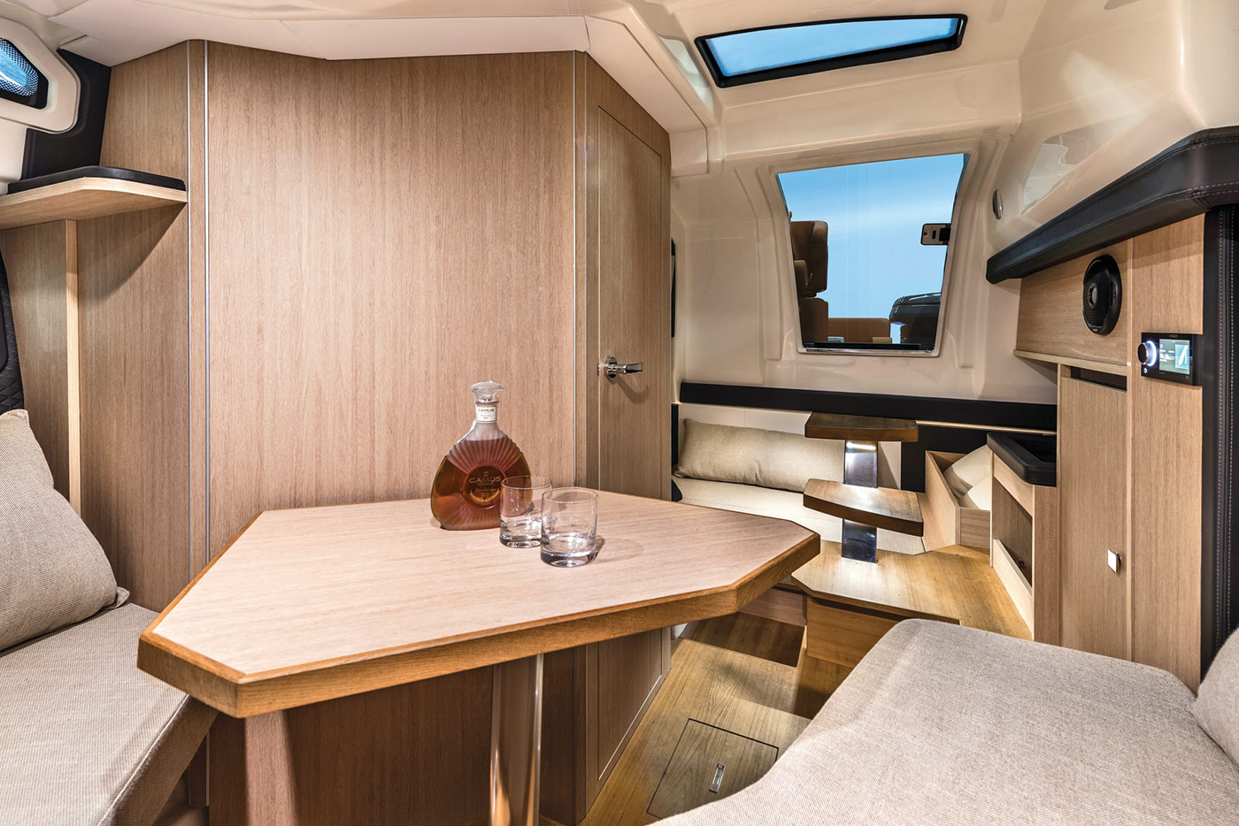 Høyden i de innvendige områdene, komfortnivået og de gjennomført elegante interiørvalgene gjør denne yachten ideell for dagsturer og lengre opphold. Rommene er lyse og luftige takket være seks lysinnslipp og en dør i pleksiglass.