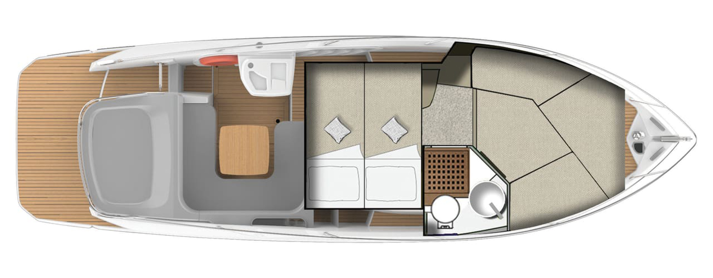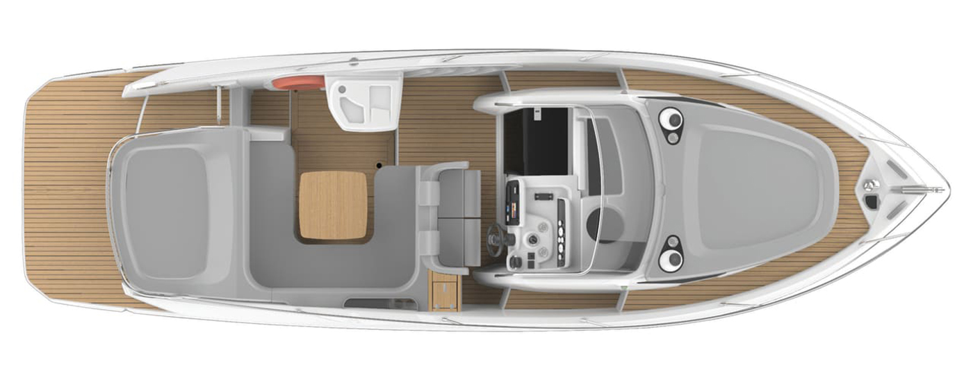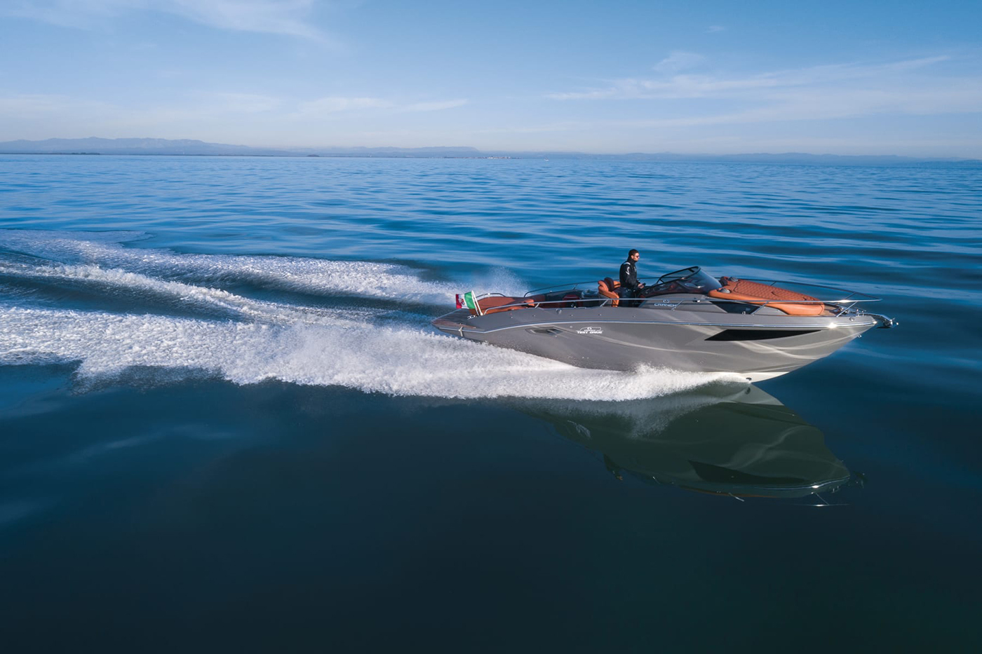 Denne 9,85 meter lange daycruiseren har myke linjer og raffinerte detaljer i en sporty, vintage stil som løfter både funksjonalitet og eleganse.