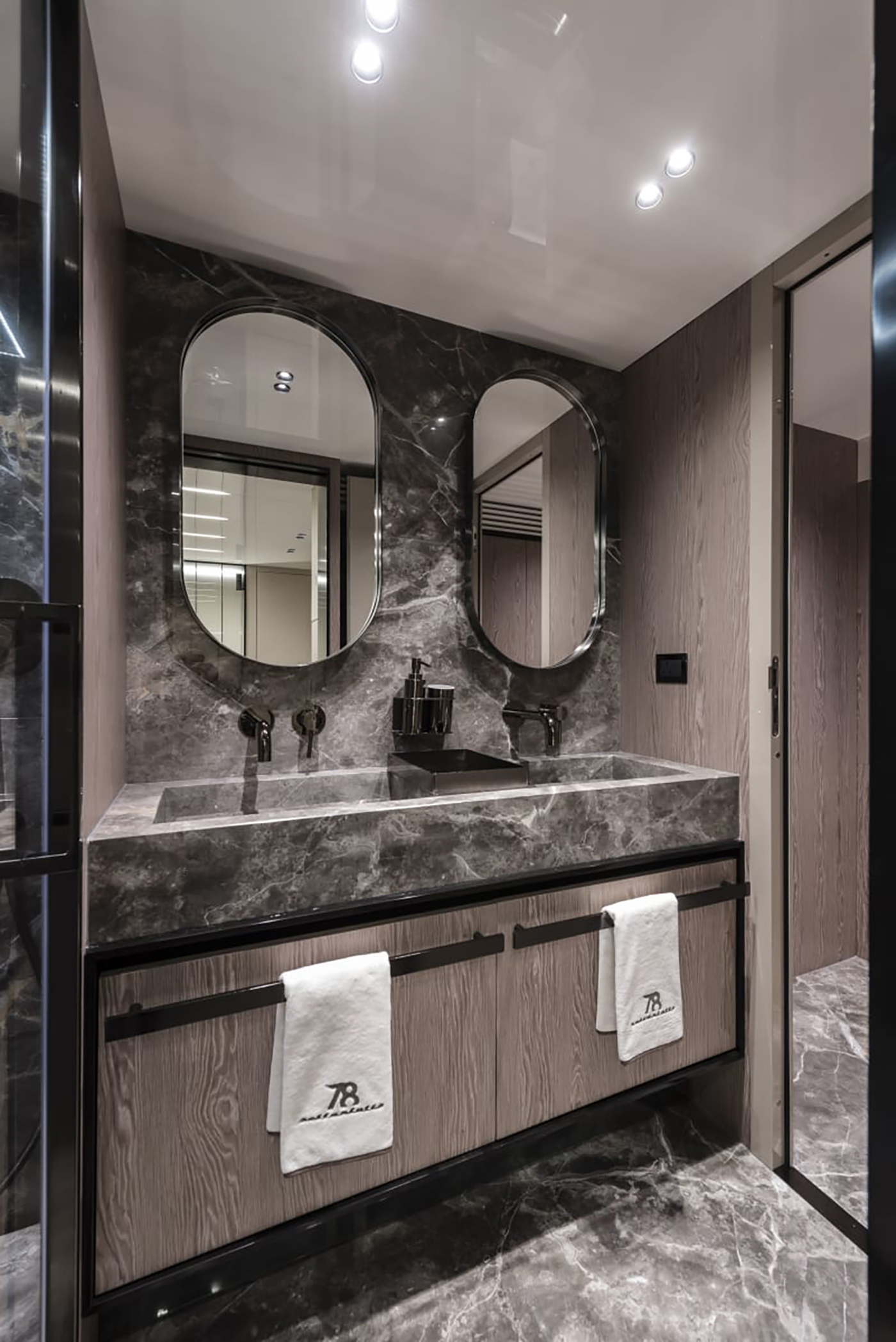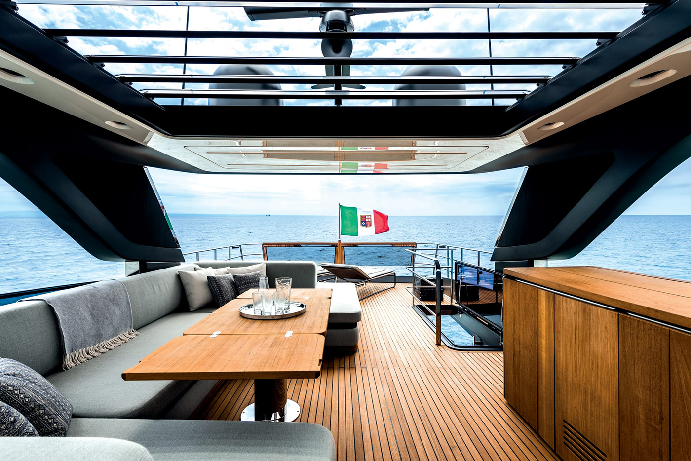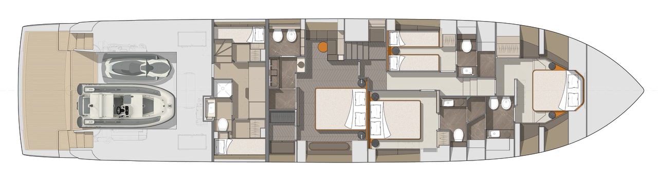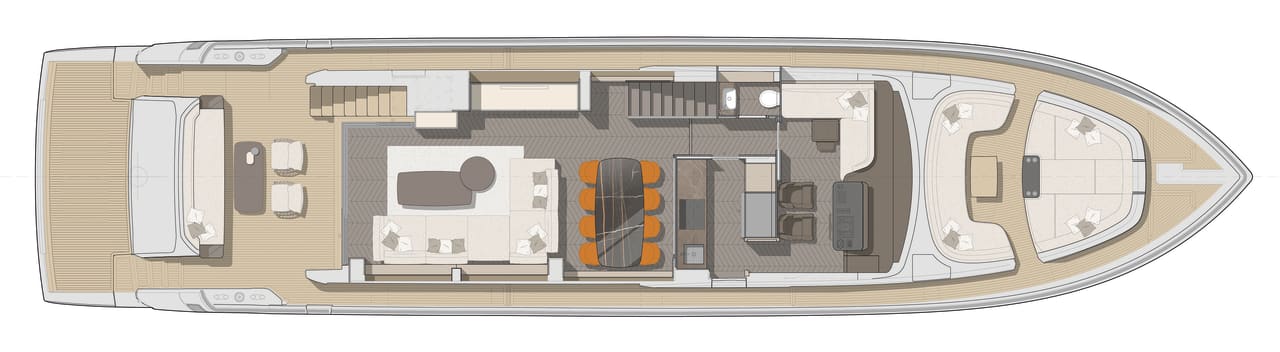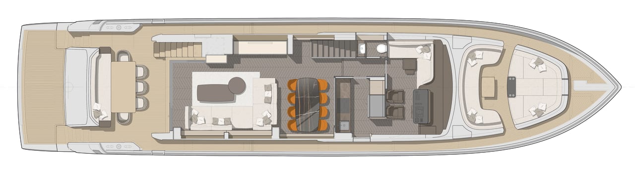 Arkitekturen til Settantotto 78 er signert Aldo Cranchi: en grundig gjennomgang av alle tekniske og konstruksjonsmessige aspekter sikrer fremragende hydrodynamisk effektivitet.