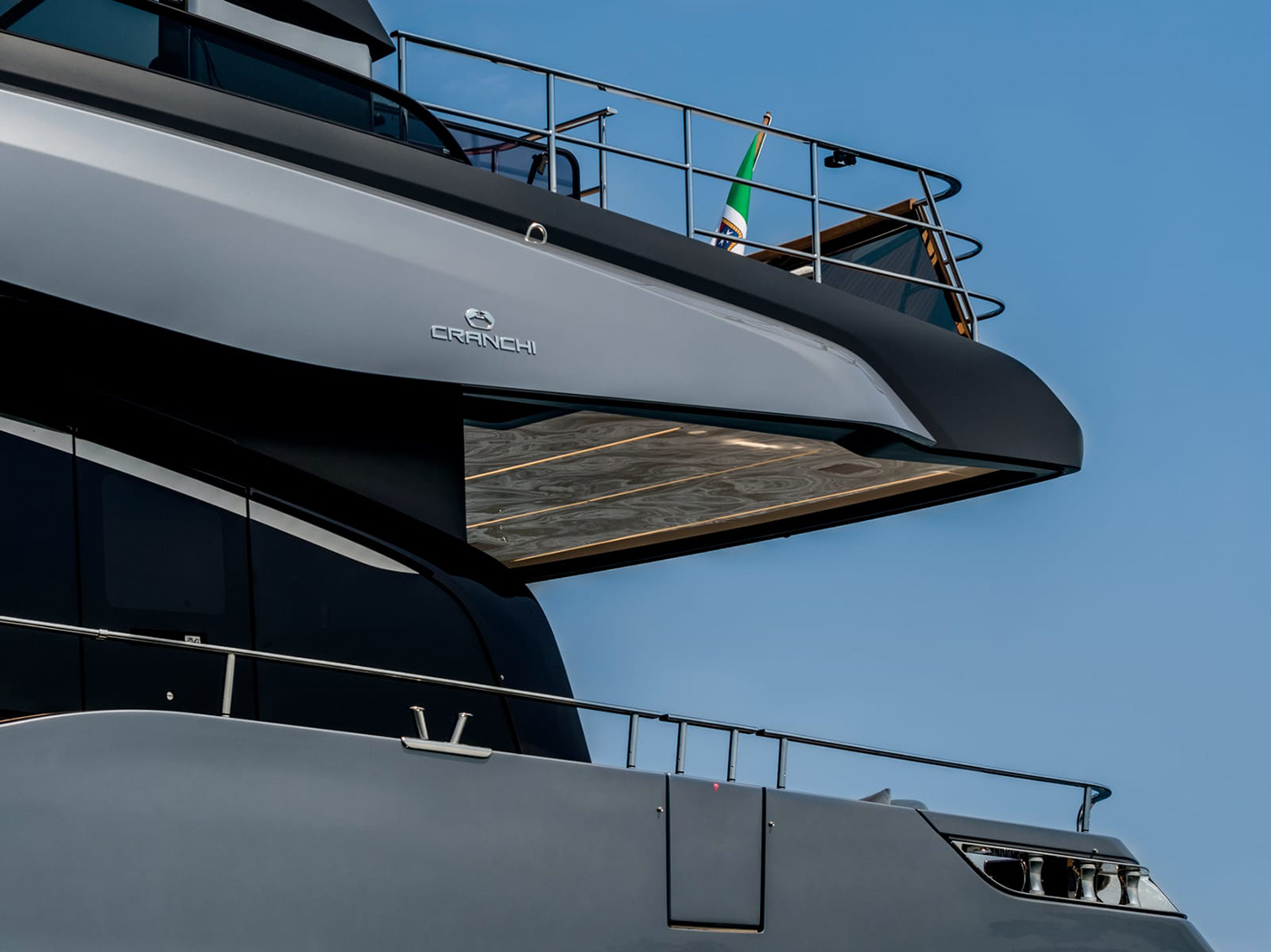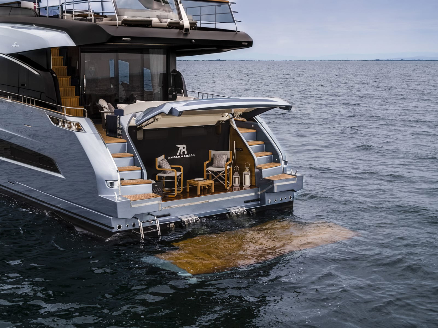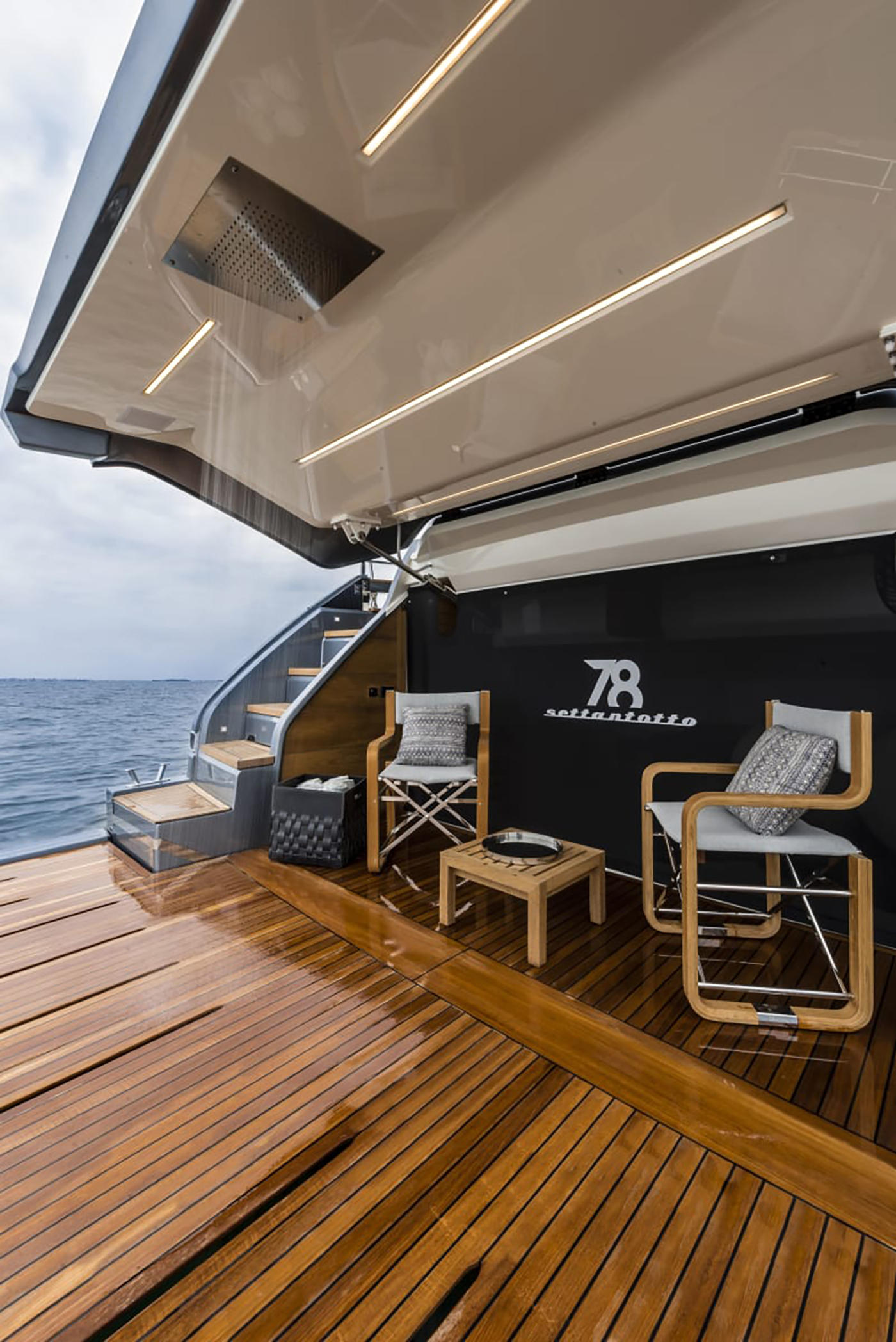 Cranchi Settantotto 78s lengde på 25 meter uttrykker båtens storhet i sin helhet og verftet sitt fokus på detaljer. Linjene til Settantotto 78 er flytende, uten skarpe kanter. De ulike tilgjengelige fargekombinasjonene for skroget skaper et stemningsfullt samspill mellom yachtens struktur og overbygg, der overbygget fremstår visuelt lettere. Båtens linjer får dermed økt eleganse og dynamikk. Samtidig gir den høye, utsvingte baugen og den markerte skansekledningen en følelse av styrke og stabilitet – akkurat slik man forventer av en stor luksusyacht.